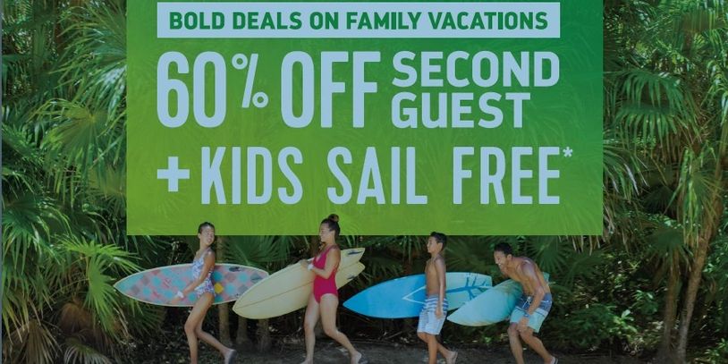 BOGO60 Offer details: Buy One Guest, Get Second Guest 60% Off Kids Sail Free Offer Details: Guest 12 and under sail free on sailings 3 nights or longer Offer excludes: Thanksgiving Sailings (Departing between November 20 – November 28, 2025); (Departing between November 19 – November 27, 2026); (Departing between December 18, 2025 – January 5, 2026); (Departing between December 17, 2026 – January 4, 2027), Spring Break Sailings (Departing between March 6 – April 9, 2026); (Departing between March 5 – April 1, 2027), Alaska Cruise Tour Sailings (Departing between May 16 – September 12, 2025); (Departing between May 15 – September 11, 2026),Summer sailings (Departing between May 22 – August 29, 2025) excluding Harmony of the Seas sailing July 26, 2026; (Departing between May 21 – September 4, 2026) ; Chinese New Year sailing on Ovation of the Seas (Departing February 15, 2026- February 18, 2026)